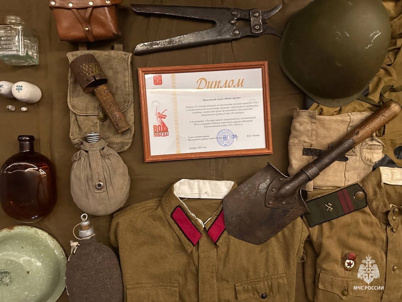 В Доме молодежи Московского района Санкт-Петербурга «Пулковец» состоялась VIII Конференция патриотического воспитания, посвященная итогам Года Защитника Отечества и 80-й годовщине Победы в Великой Отечественной войне.В рамках конференции состоялась церемония награждения. В рамках конкурса по духовно-нравственному и патриотическому воспитанию граждан, укреплению и пропаганде семейных ценностей среди организаций и объединений Московского района Санкт-Петербурга, проект поискового отряда «Наше время» Санкт-Петербургского университета ГПС МЧС России был признан лауреатом II степени в номинации «Лучший проект (мероприятие), посвященный 80-й годовщине Победы советского народа в Великой Отечественной войне 1941-1945 гг.».